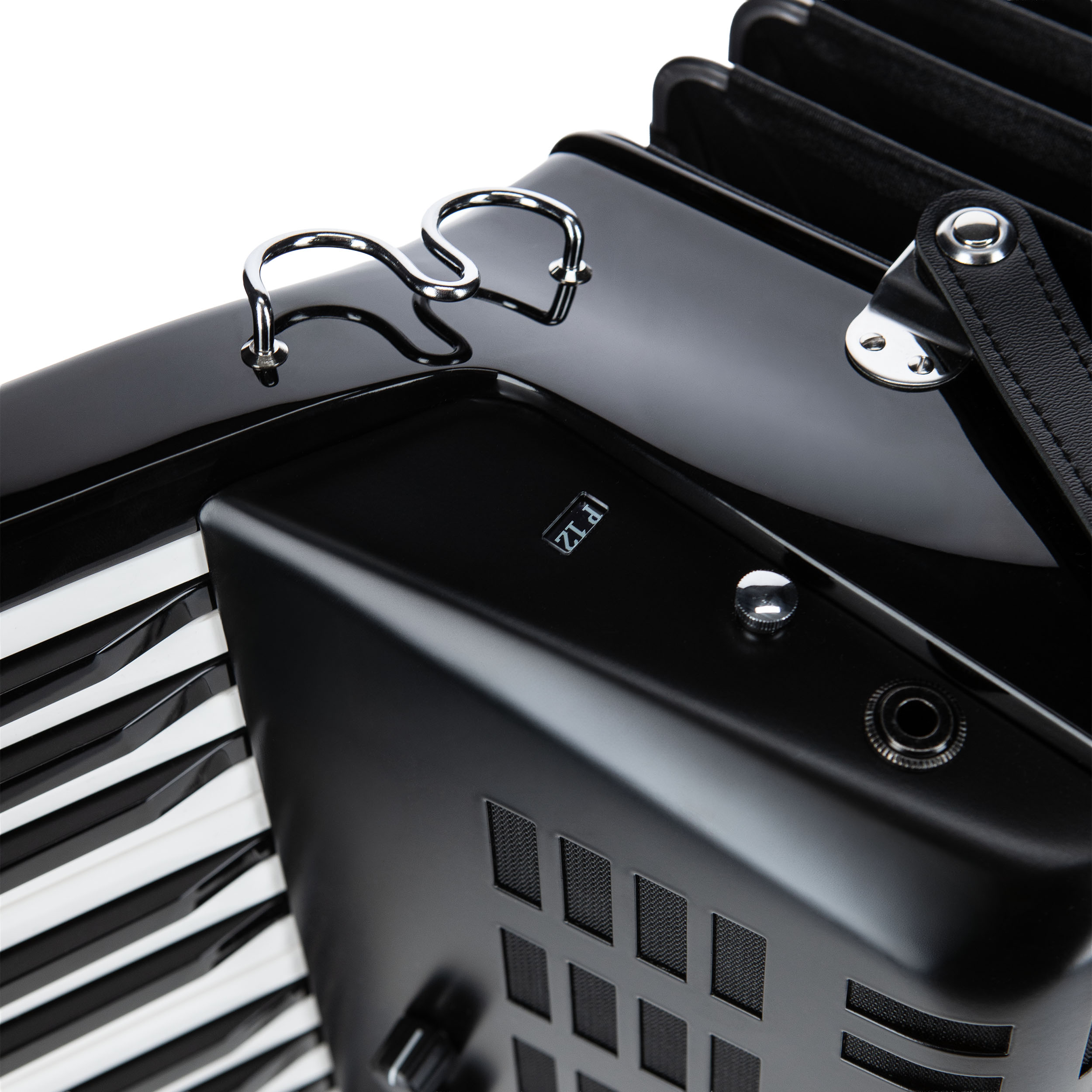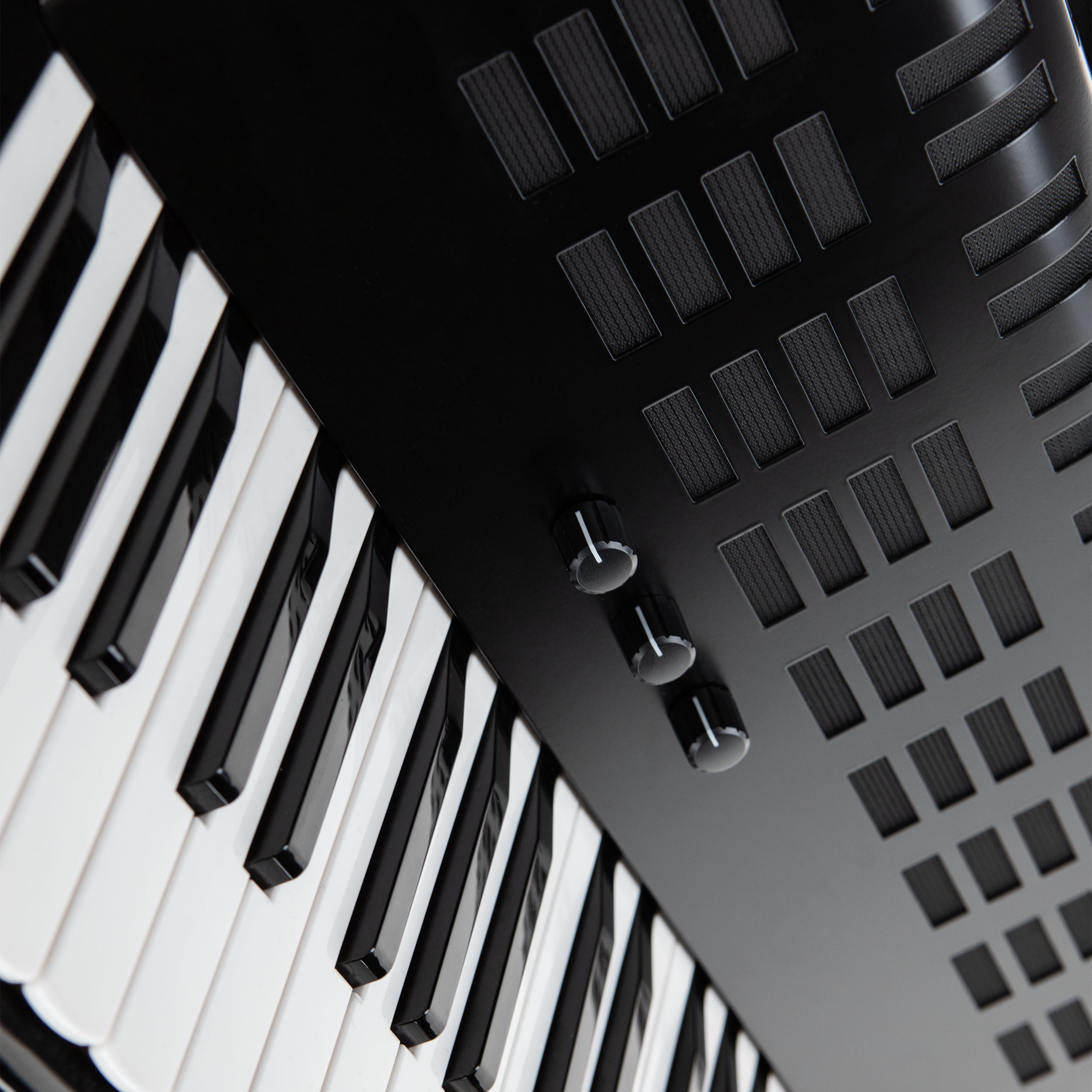 - Original Tastatur: Die Klaviatur auf der Diskantseite basiert auf der Mechanik eines führenden Herstellers. Um ein authentisches Spielgefühl zu gewährleisten, werden die Klappen im Inneren mechanisch bewegt.